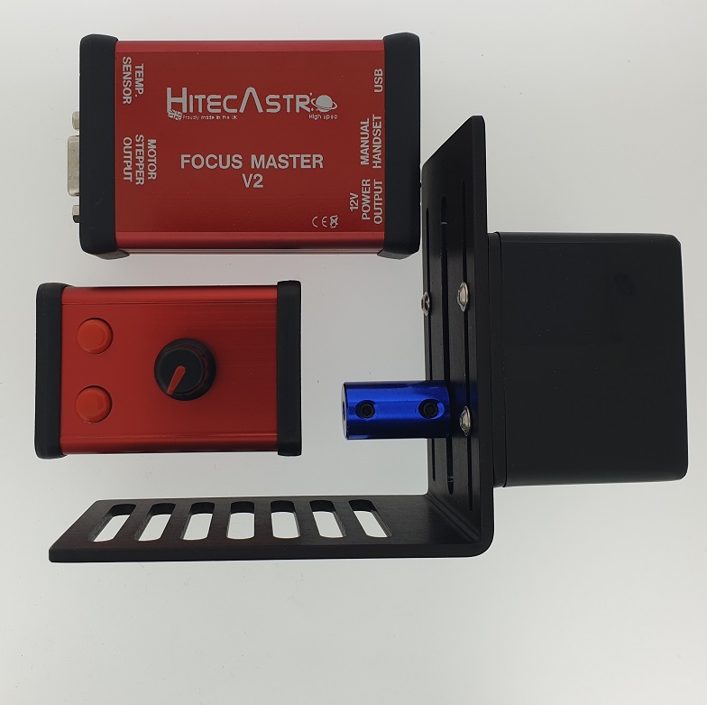 FocusMaster is a high quality digital focus controller for stepper motor based focusers. Hitecastro have totally redesigned one of our flagship products to give our customers better value, and a better product and still at a price point which won't break the bank. We can now supply full focus kits including our own universal mounting bracket and a high quality digital stepper motot for the highest precision digital focusing.